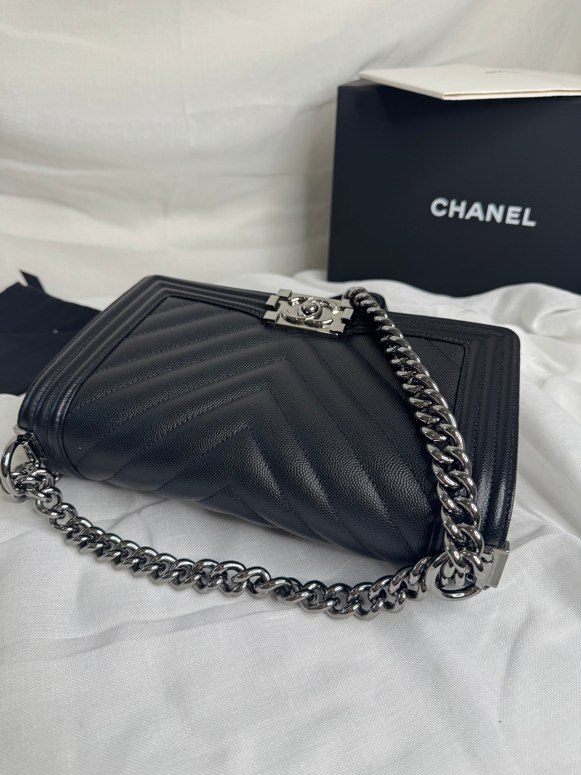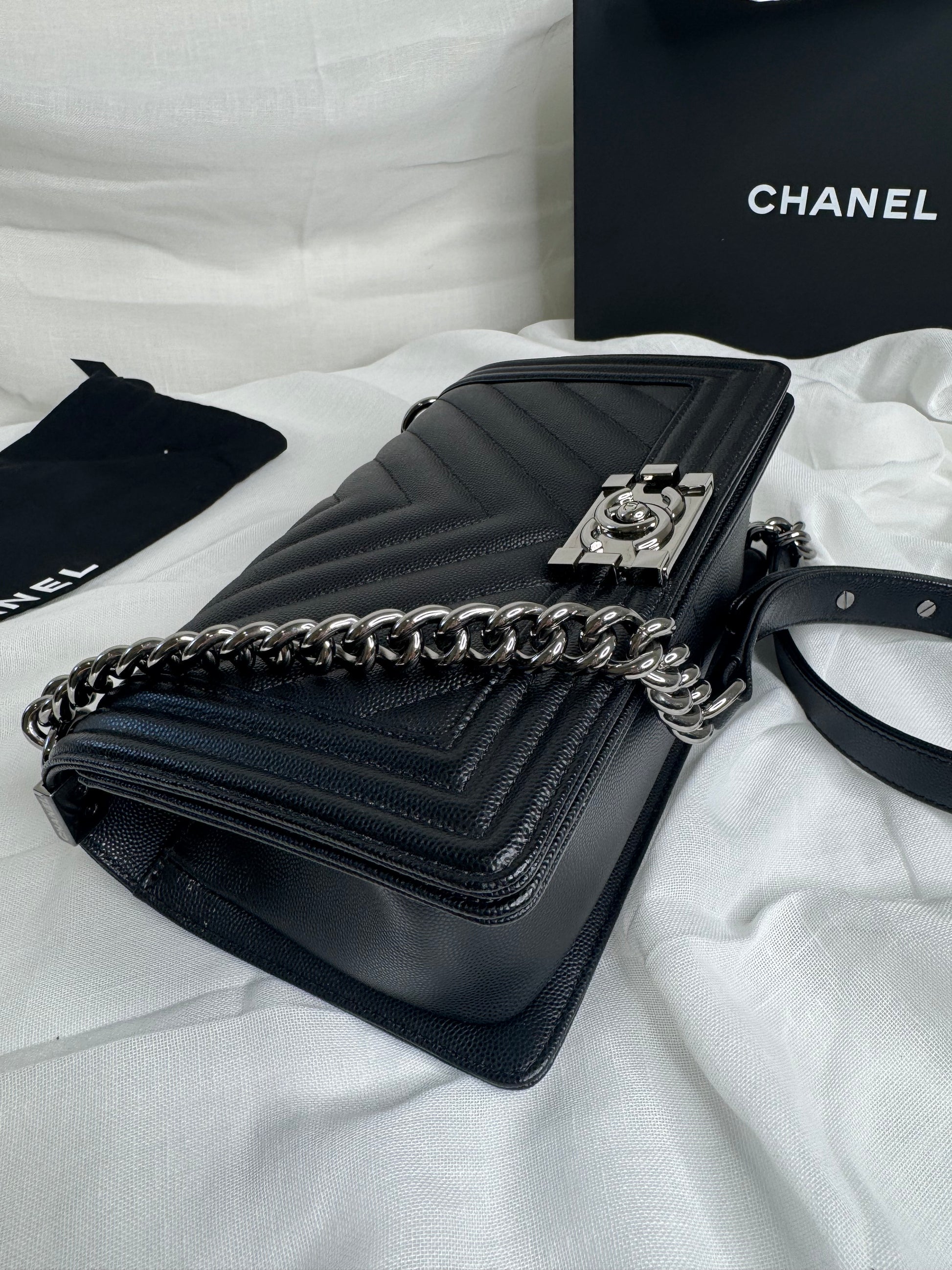 Chanel caviar Chevron boy medium SHW